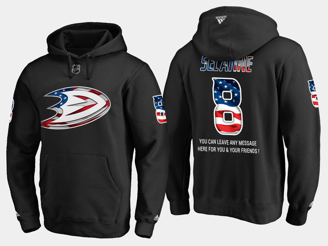 Stunning Ducks #8 Teemu Selanne NHL Banner Wave Usa Flag Black Hoodie for ultimate sports fans