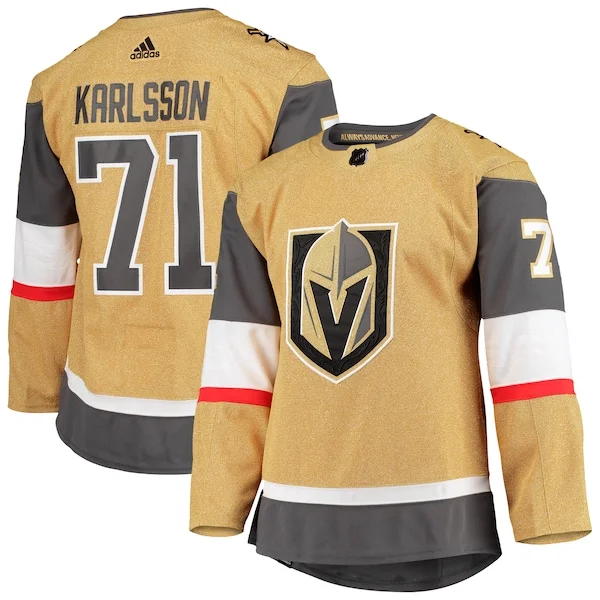 Stunning William Karlsson Vegas Golden Knights adidas Home Primegreen Authentic Player Jersey Gold a must have for jersey collectors