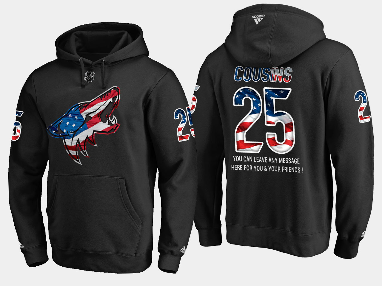 Exquisite Coyotes #25 Nick Cousins NHL Banner Wave Usa Flag Black Hoodie for true hockey enthusiasts