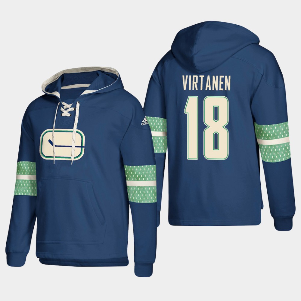 Glamorous Vancouver Canucks #18 Jake Virtanen Blue adidas Lace Up Pullover Hoodie a must have for jersey collectors