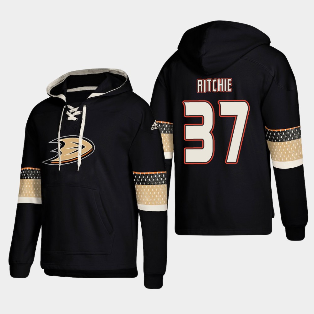 Exquisite Anaheim Ducks #37 Nick Ritchie Black adidas Lace Up Pullover Hoodie to showcase your team loyalty