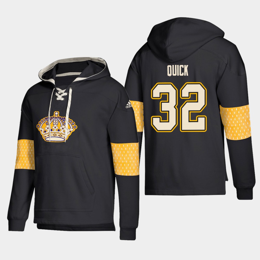 Stunning Los Angeles Kings #32 Jonathan Quick Black adidas Lace Up Pullover Hoodie a must have for jersey collectors