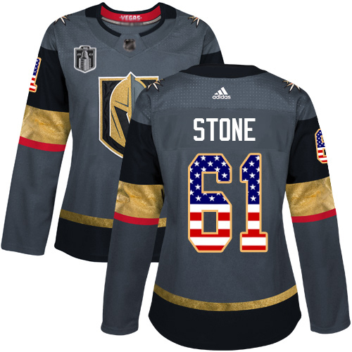 Alluring Adidas Golden Knights #61 Mark Stone Grey 2023 Stanley Cup Final Patch Home Authentic USA Flag Women’s Stitched NHL Jersey to showcase your team loyalty